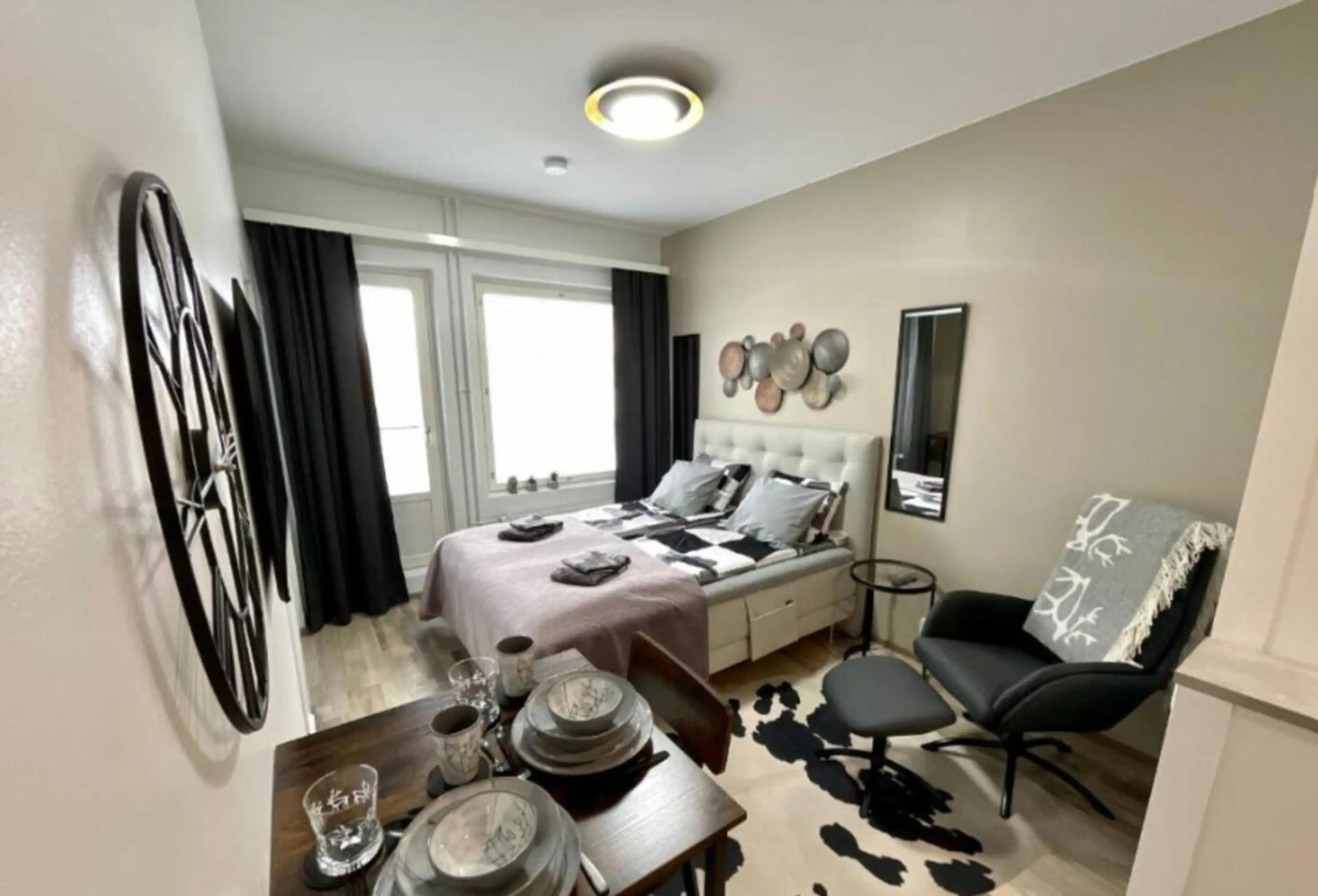 Experience modern Nordic living in this stylish one-bedroom apartment, located in the very heart of Rovaniemi. Designed for comfort and elegance, the apartment features a fully equipped kitchen, a cozy living area, and a premium-quality bedroom with soft linens and warm lighting. Perfect for couple...