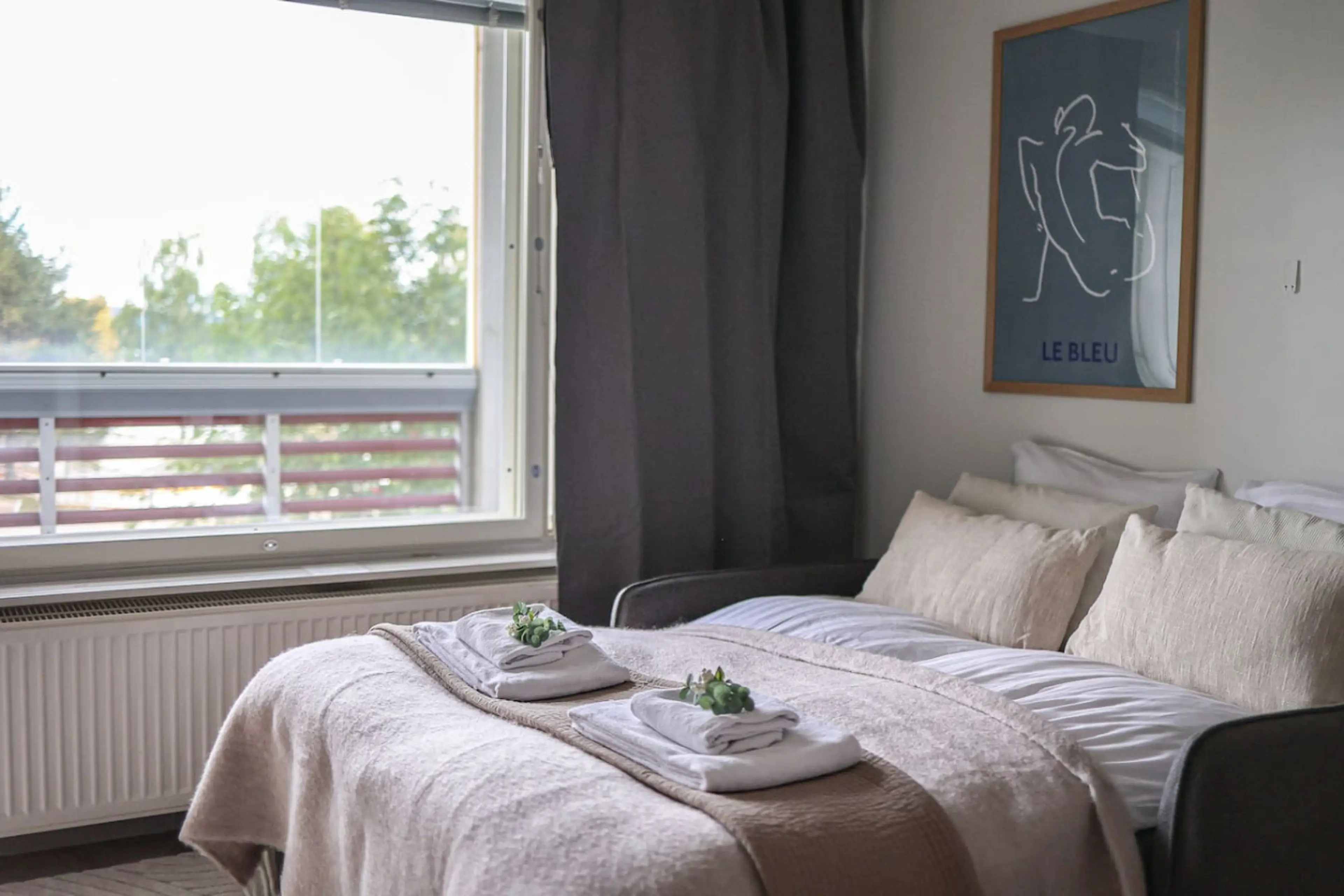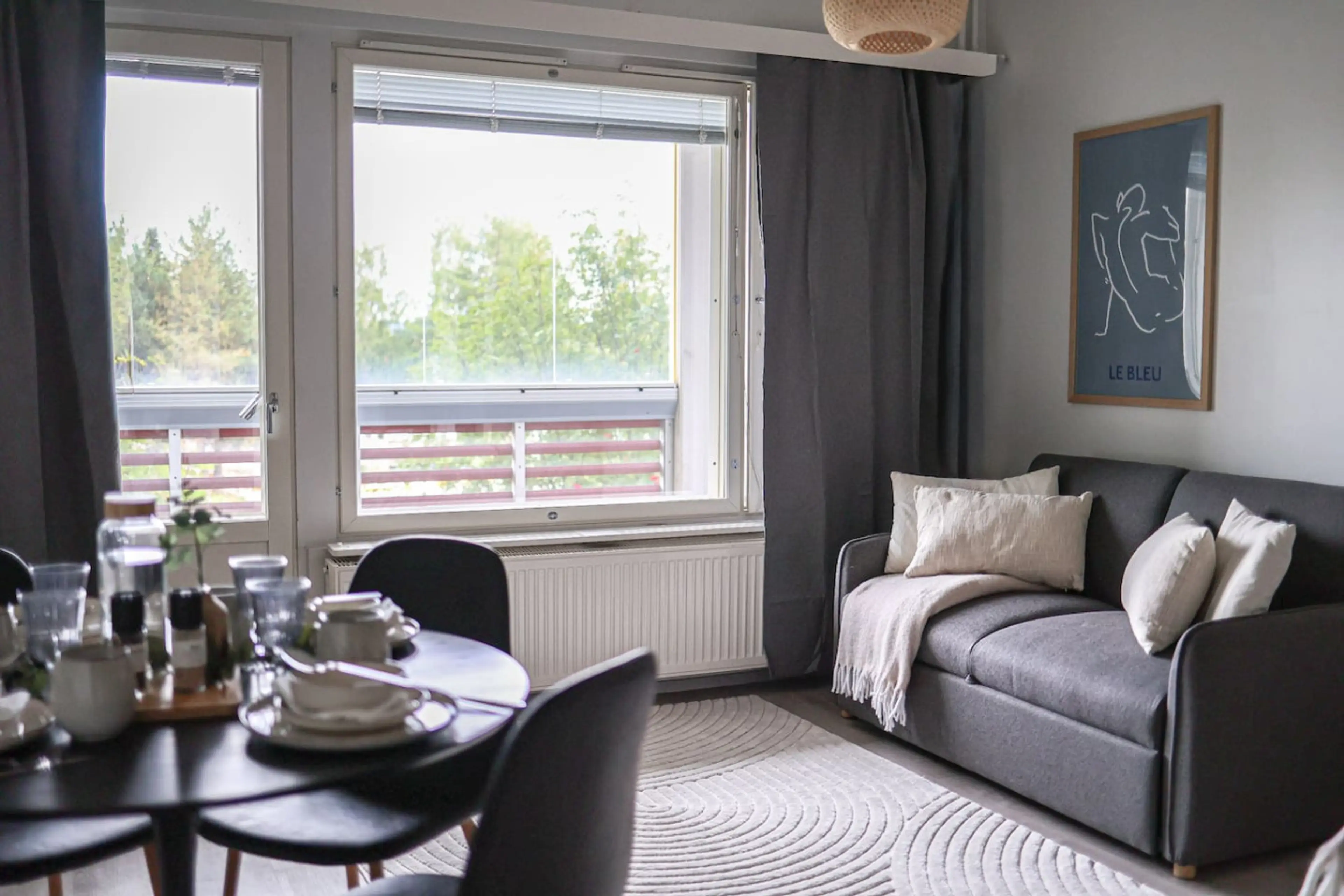 Modern 38 m² apartment with sauna in central Rovaniemi. Bright and cozy home with 2 + 2 beds, a fully equipped kitchen, and balcony. Located on the 2nd floor with elevator access, just steps from restaurants, shops, and the river. Enjoy effortless comfort and the best of city living in Lapland. Si...