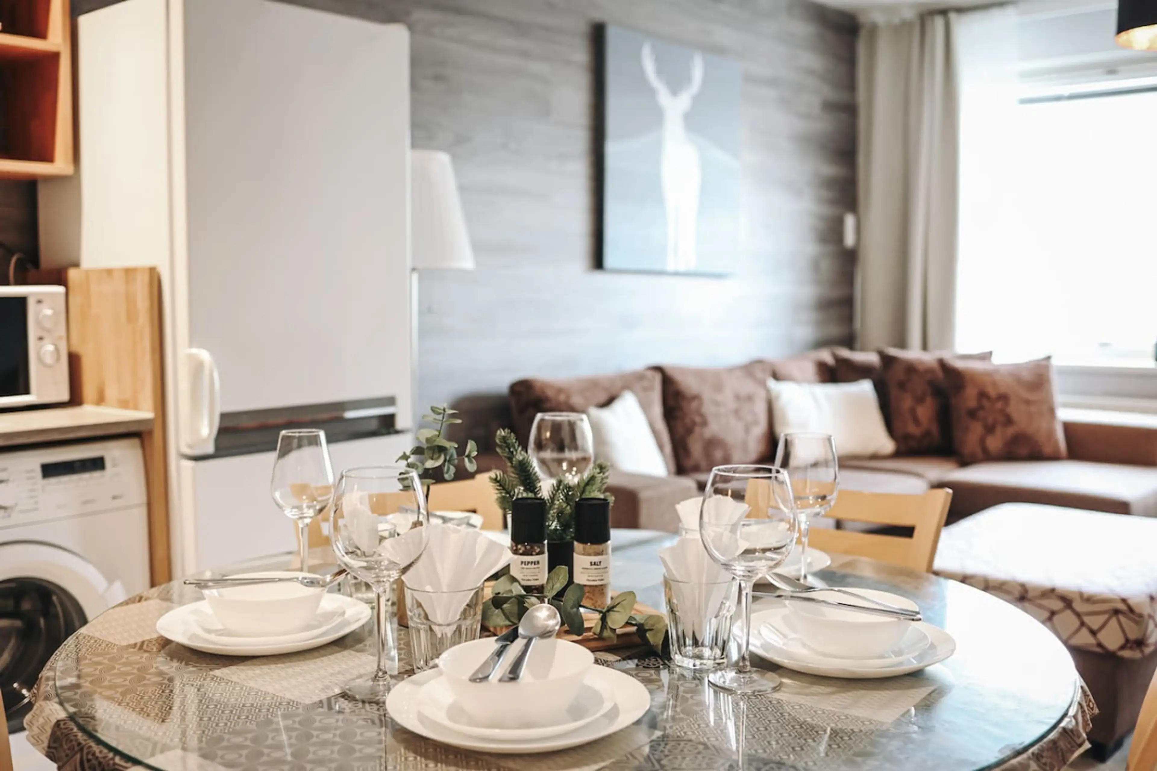 Spacious two-bedroom apartment located in the heart of Rovaniemi city center. Each bedroom offers sleeping arrangements for up to three guests. The apartment is fully equipped with everything you need for a comfortable stay, including all essential appliances and amenities. Perfect for families, gro...