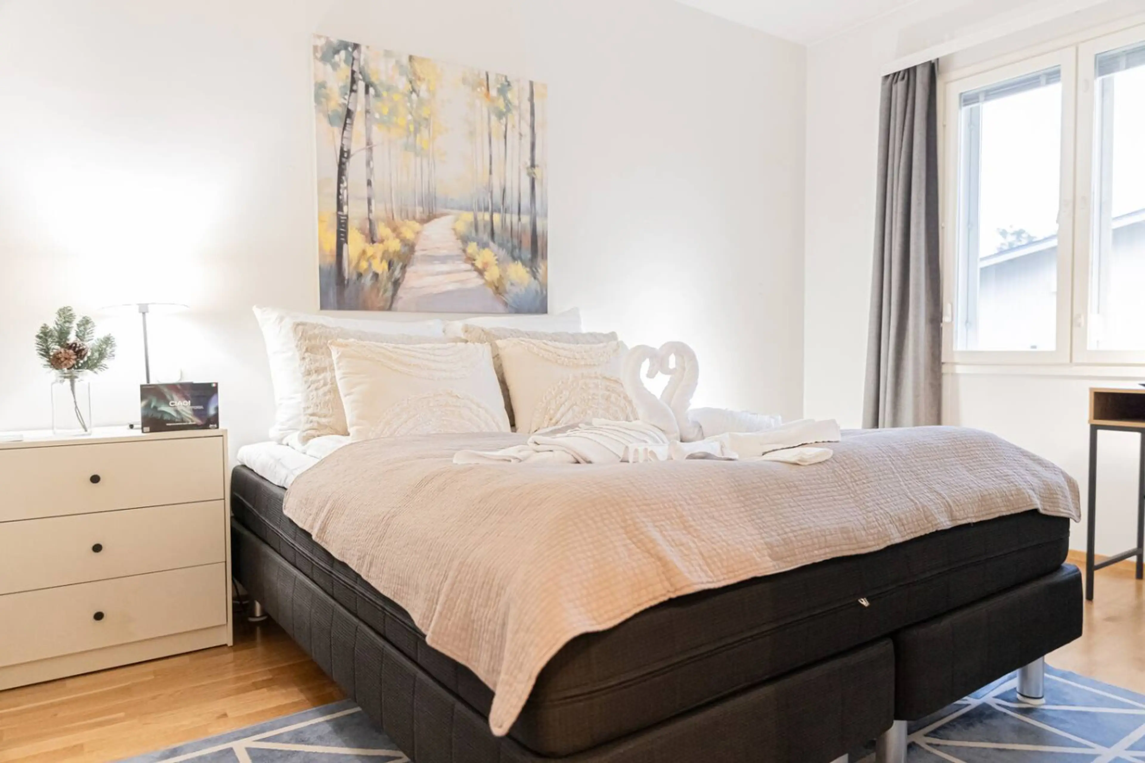 Enjoy your Lapland getaway in this stylish 52 m² apartment in a peaceful area of Rovaniemi. The home features a cozy living room with a sofa bed, a bedroom with a 160 cm double bed and an extra bed — sleeping up to 5 guests. Relax in your private sauna after a day of Arctic adventures, or unwind in...